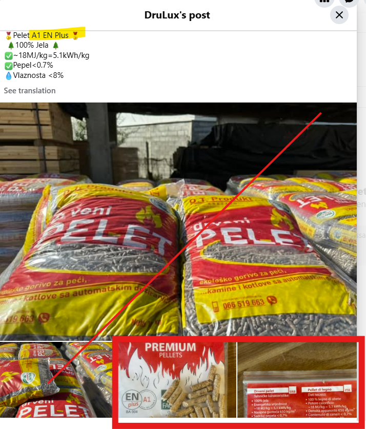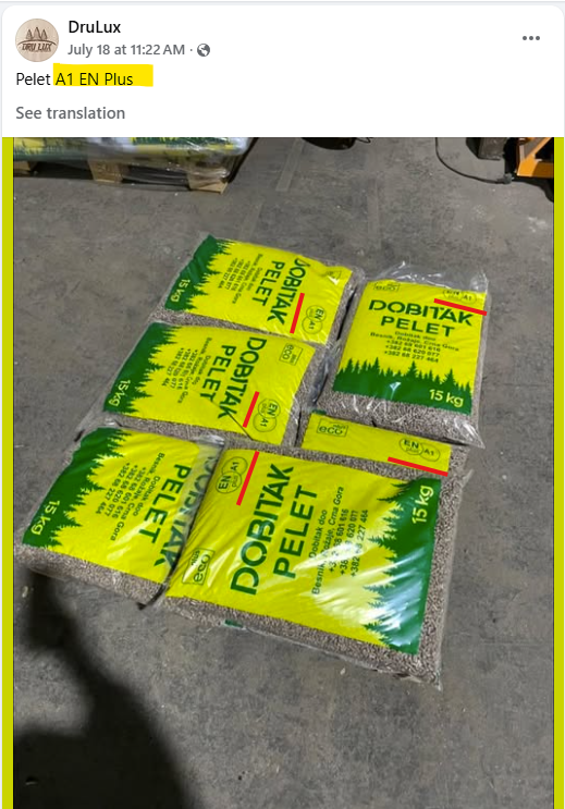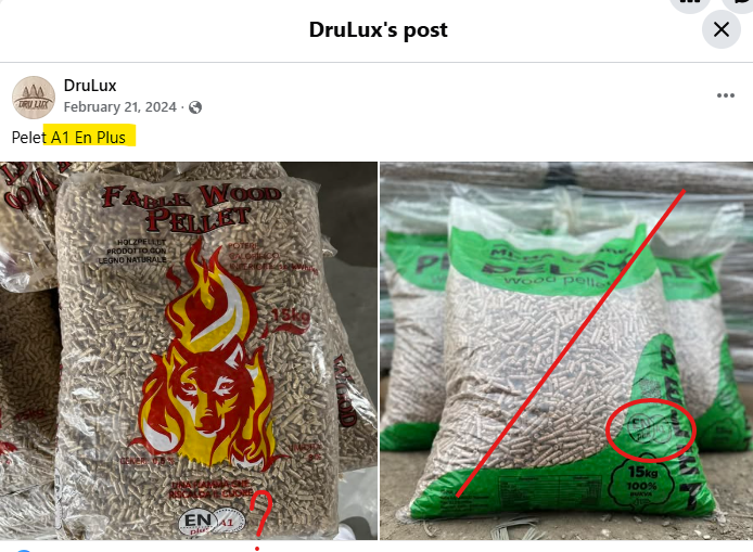 > Misuse of the certification/trademark in marketing campaigns and advertisements. This company is advertising its non-certified "DREAM PELLETS" bags bearing the ENplus® logo on its Facebook profile. [1] [2]