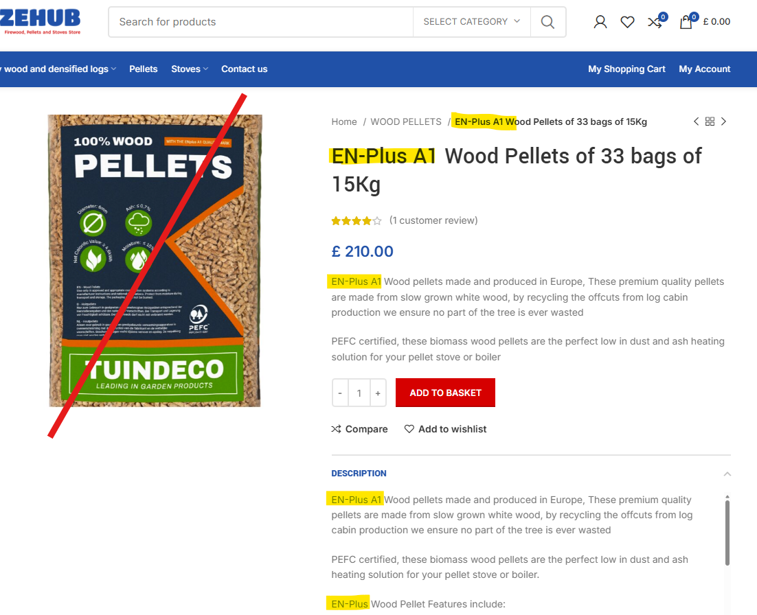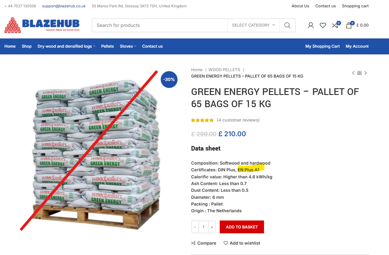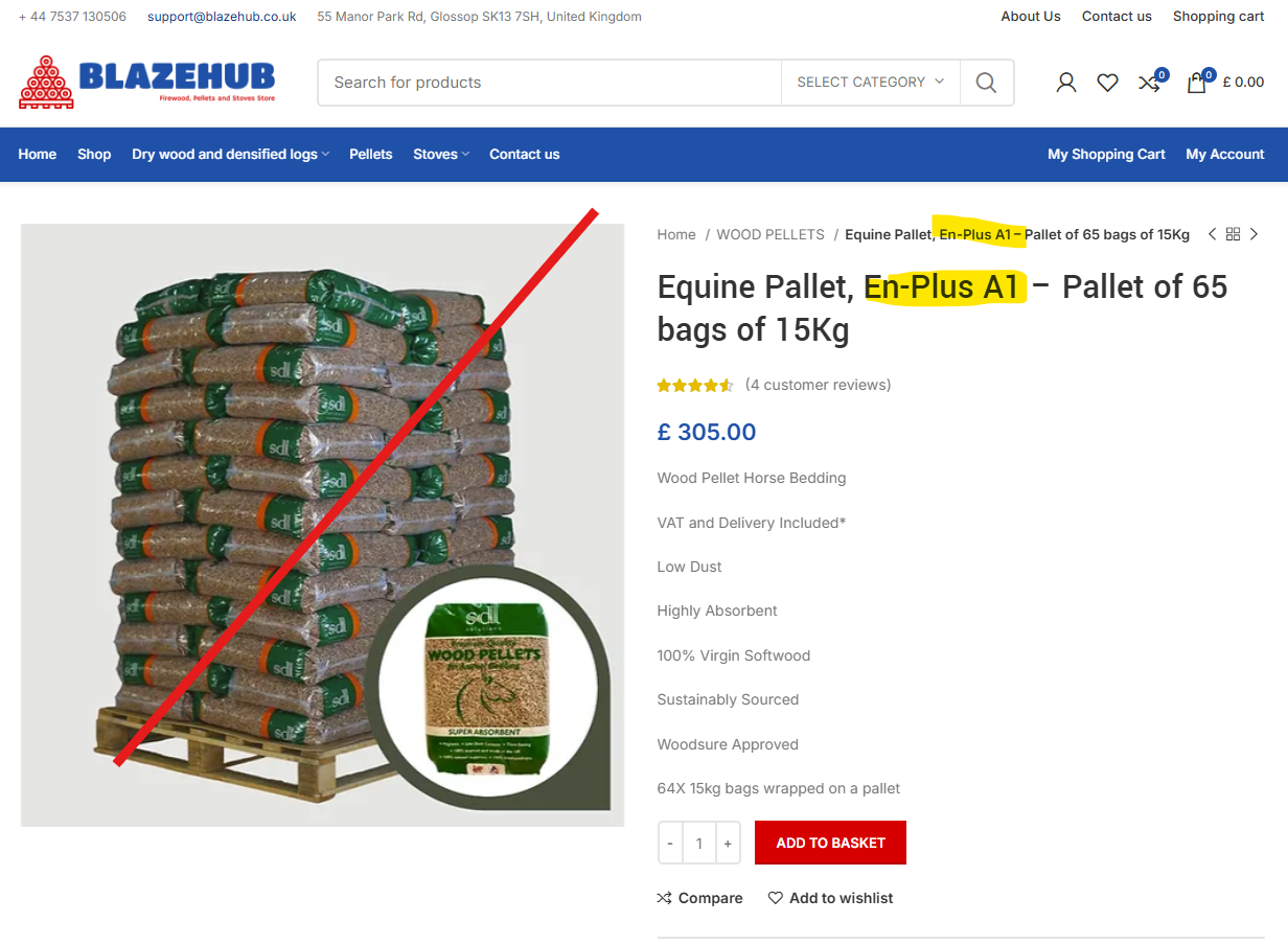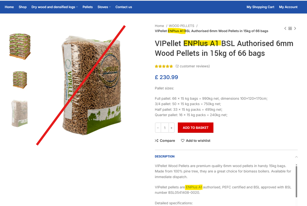 BIO-PAL www.bio-pal.co.uk TR16 5DZ Cornwall United Kingdom > Misuse of the certification/trademark in marketing campaigns and advertisements. This company is wrongfully advertising all the products it offers as accredited with the ENplus® “standard” on its websiteTwitter and Facebook profiles.